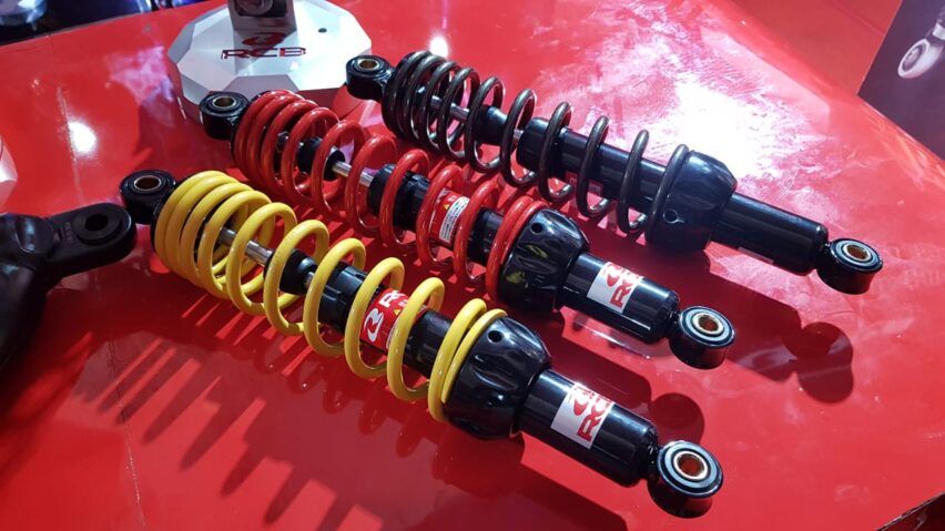 Selain knalpot baru, EMP juga mengenalkan suspensi belakang terbaru dari Racing Boy (RCB). Ada lima varian yang ditawarkan : VS, VD, VE, MB-2 dan A2. Peredam kejut ini dapat digunakan untuk segala motor, dengan model single shock atau double shock.