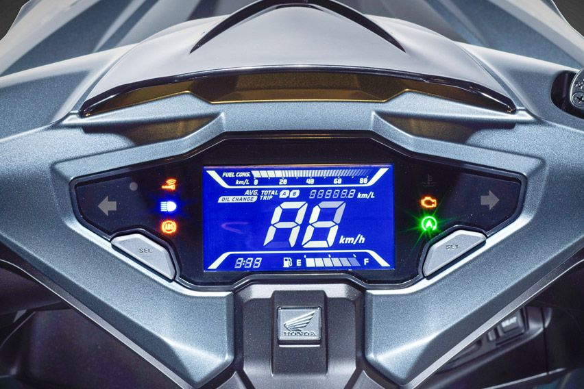 Lantas soal fitur, Air Blade sudah bertabur fasilitas lengkap. Panel instrumen yang sebelumnya memakai jarum mekanik, ditukar layar full digital informatif. Sebutlah penghitung konsumsi bahan bakar rata-rata maupun real time, trip meter, speedometer, waktu serta fuel gauge, semua ada di sana. Menyalakan mesin pun cukup dengan memutar kenop, karena sudah keyless. Plus, sudah ada soket 12 V yang jadi perangkat standar skutik masa kini.