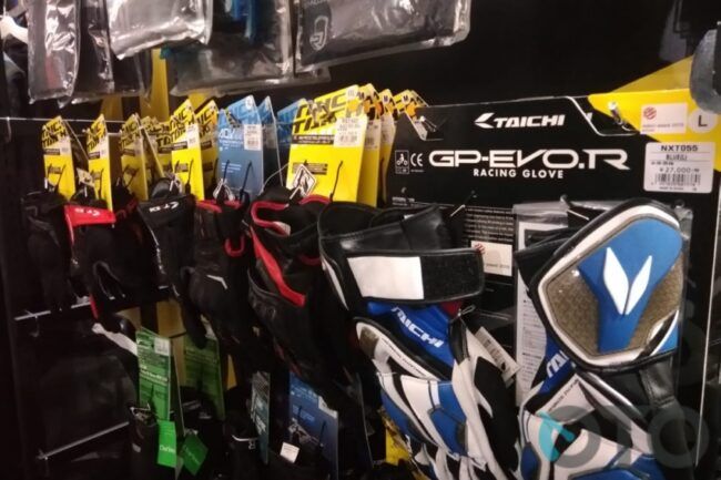 Yang paling banyak dijual sarung tangan. Total ada sepuluh jenis, seharga Rp 900 ribu – Rp 2,55 juta. Setiap tipe memiliki keunggulan masing-masing. Ada yang untuk harian, tanpa protektor sendi. Ada pula yang dibuat khusus dengan bahan dan protektor kualitas tinggi. Sila sesuaikan saja dengan kebutuhan. Nah, di samping itu, tersedia juga jaket, celana, kaos, serta protektor mulai dari Rp 400 sampai Rp 4 jutaan.