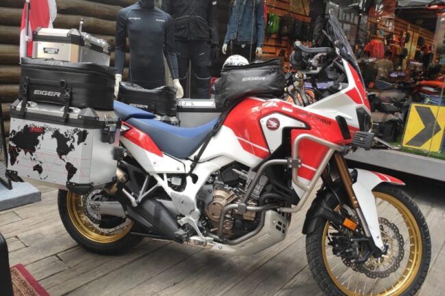 Dalam perjalanannya, ia menggunakan Honda Africa Twin CRF1000DCT L2 2019. Sama seperti perjalanan sebelumnya, ekspedisi kali ini tetap disponsori Eiger. Brand adventure asal Bandung itu menyediakan segala perlengkapan kebutuhan riding. Menurut Kang Jeje, hanya Eiger yang punya produk berkendara dan bertualang berkualitas dunia.