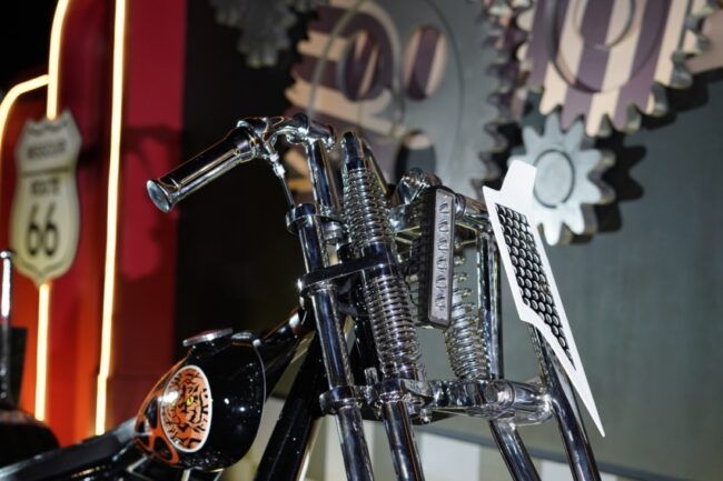“Proyek ini saya garap selama kurang lebih satu tahun. Dikerjakan hanya di Sabtu dan Minggu, karena hari biasa saya lebih fokus untuk mengerjakan motor pelanggan. Saya menghadirkan dua muka pada motor ini karena ingin terlihat berbeda dengan tetap mengusung konsep chopper,” ujar Rio.