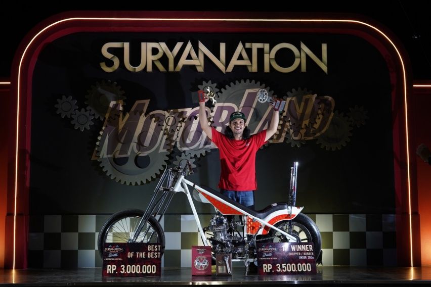 “Motor milik Rio terpilih menjadi yang terbaik karena membutuhkan pengerjaan yang terencana dan sisi teknis yang rumit. Menghadirkan konsep dua muka pada motor buatannya juga sangat bagus dan berbeda dengan motor-motor lain yang ikut pada kesempatan kali ini,” ujar Dodi Irhas, salah satu juri Suryanation Motorland Battle 2019 lewat siaran pers yang kami terima.