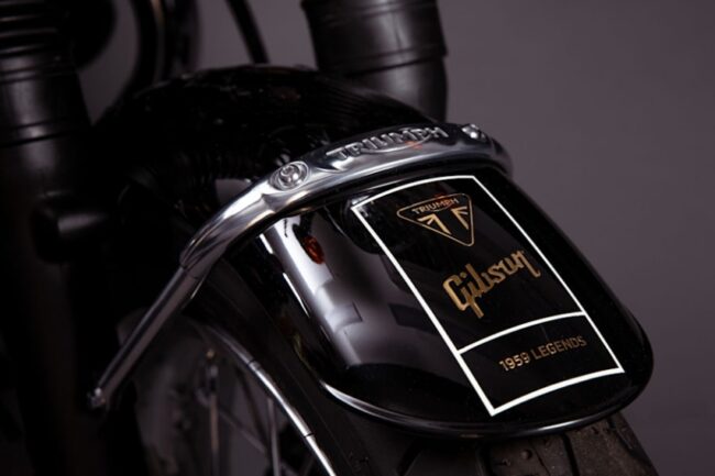 Sementara itu Gibson menghidupkan kembali gitar elektrik klasik Les Paul Standard yang juga pertama rilis pada 1959. Bodinya berwarna sunburst yang sama dengan yang ada pada tangki bensin Triumph Bonneville T120. Bodinya juga dihiasi plat anti gores berwarna hitam bergaris putih yang mirip bentuk sirip pendingin mesin di versi motornya. Logo Triumph tampil di bagian headstock dan cover pickup bawah.