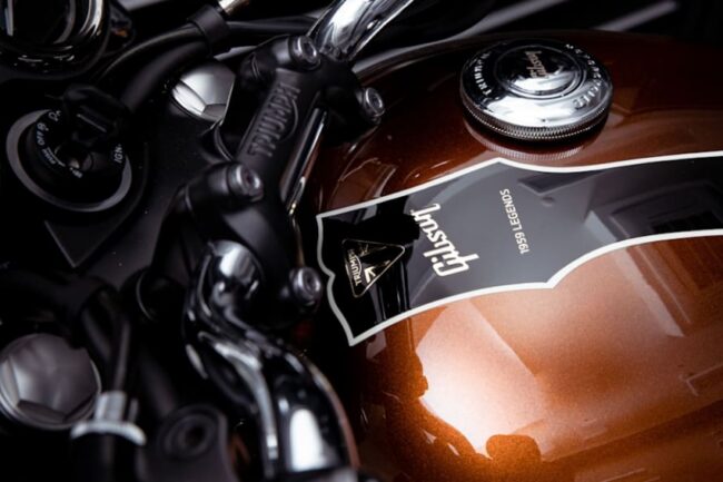 Triumph Bonneville T120 dengan balutan kelir Gibson Les PaulTriumph dan Gibson memang telah berkolaborasi sejak 2014. Kali ini kedua perusahaan kolot di masing-masing bidangnya ini berkolaborasi melahirkan mahakarya yang istimewa. Generasi perdana Triumph Bonneville T120 yang lahir pada 1959 dihidupkan kembali dalam wujud modern berbalut busana bertema gitar listrik Gibson Les Paul yang legendaris.