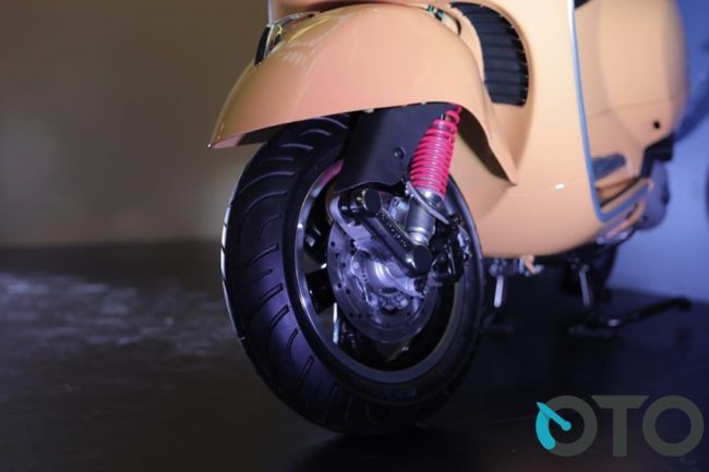 Pindah ke kaki-kaki, suspensi depan Vespa mengadopsi model tunggal layaknya produk mereka di masa lalu. Jauh berbeda dengan sang rival yang menggunakan model teleskopik. Penopang bagian belakang cenderung sama. Dua-duanya pakai suspensi ganda yang bisa disetel tingkat kekerasannya.