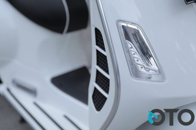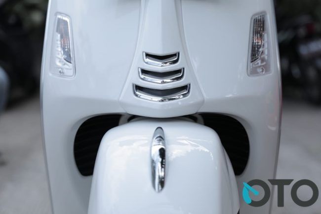 Ini semua tergantung selera. Tapi kurang lebih begini kami menyimpulkannya. Di bagian depan GTS lebih terlihat modern, elegan, sekaligus mewah. Belum lagi disisipkan sirip-sirip angin di shield depan yang membuat motor terlihat lebih “serius”. Kalau V200, memiliki tampang yang hampir serupa dengan pendahulunya. Sangat klasik. Penggunaan headlamp hexagonal juga memberi aura yang sedikit lebih sporty.