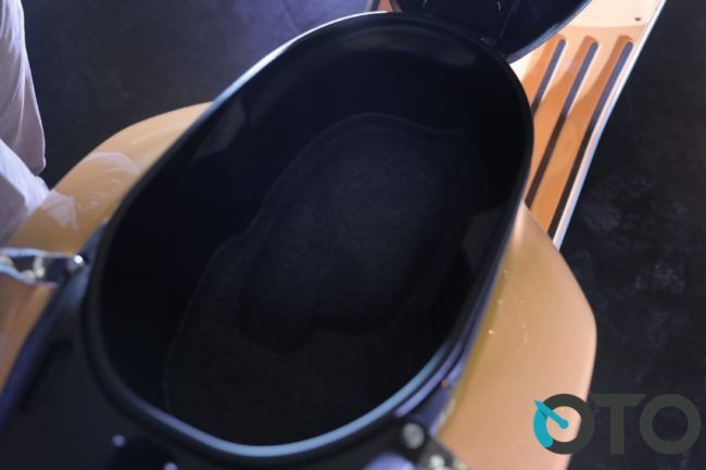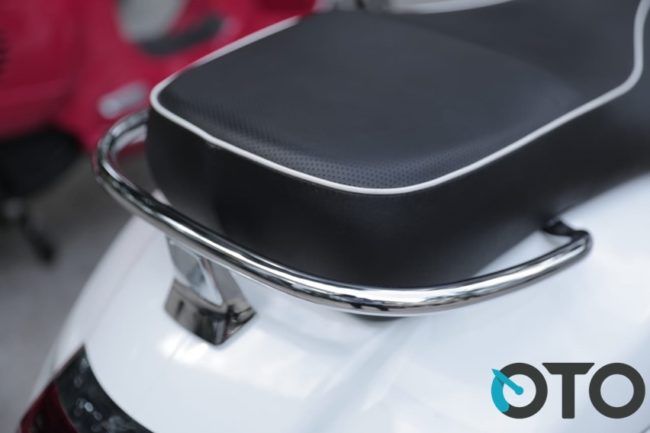 Nah, V200 kalah telak pada fitur berikutnya. GTS sudah dilengkapi idling start/stop system yang berfungsi saat motor berhenti lebih dari tiga detik. Fitur ini juga dapat dimatikan melalui tombol di kanan stang. Selanjutnya, ia punya kunci dengan alarm. Yang tentunya lebih aman jika sedang memarkirkannya. Pun saat mencari di keramaian tidak menyulitkan. Lalu ada tilt sensor. Ia berbunyi untuk memperingatkan pengendara, saat sudut kemiringan sudah di titik bahaya. Semua hal ini tidak dimiliki oleh Lambretta. Namun hal-hal seperti immobilizer, soket 12V, bagasi luas, tombol pembuka jok, sudah ada sebagai fasilitas standar.