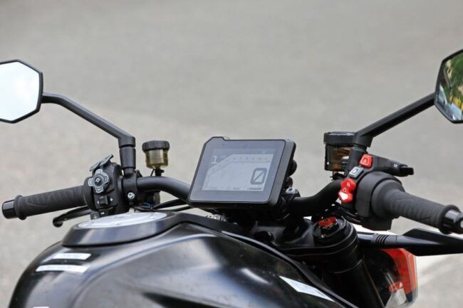 Knalpotnya punya desain lebih dinamis, kabarnya menggunakan lansiran Akrapovic. Bentuknya melengkung di bawah mesin, seperti ular bersarang. Terselipkan catalytic converter yang jauh lebih rapi daripada desain model saat ini.
