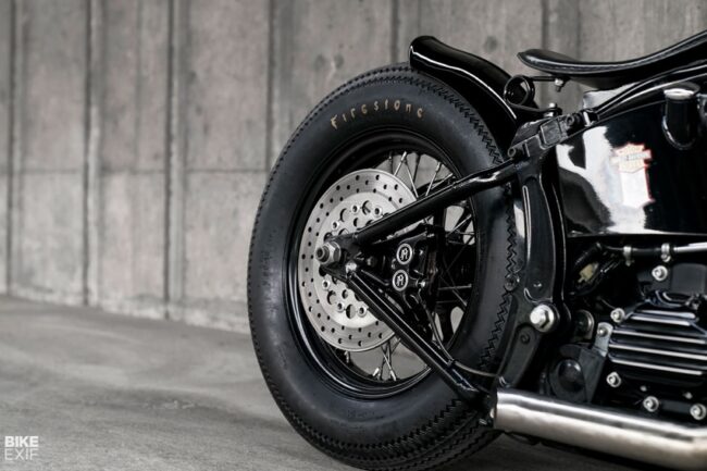 Heritage Softail aslinya punya pelek depan dan belakang ukuran 16 inci. Untuk menunjang tampilan, maka roda depan diubah menjadi 19 inci kepunyaan HD Sportster. Pengunaan ban juga dibuat lebih besar 4.00 depan dan 5.00 belakang, supaya nuansa kustom bobber lebih terasa. Piringan rem dan kaliper juga tidak lupa diganti dari brand Performance Machine.