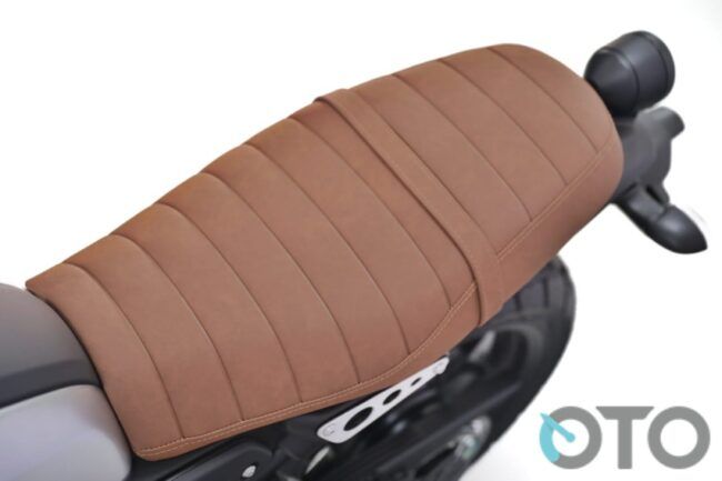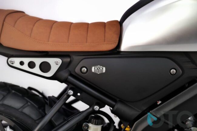 Pun dengan bentuk jok tandemnya, mengusung gaya Heritage. Bentuknya ramping memanjang seperti ‘roti.’ Karena ada garis-garis tegas. Tersedia warna coklat dan hitam. Di sampingnya ada ornamen dengan aksen lingkaran, salah satu ciri khas XSR series.