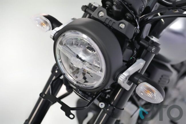 Desainnya turunan dari keluarga besar Sport Heritage XSR series. Sesuai namanya, bernuansa klasik tetapi sudah dibenamkan teknologi modern. Bentuk headlamp model bulat layaknya motor 80-90an. Tetapi di dalamnya sudah dilengkapi multi-reflektor serta lampu Daytime Running Light atau DRL jug. Teknologinya pun sudah Light Emitting Diode alias LED. Terdapat logo XSR di bagian tengah lampu.