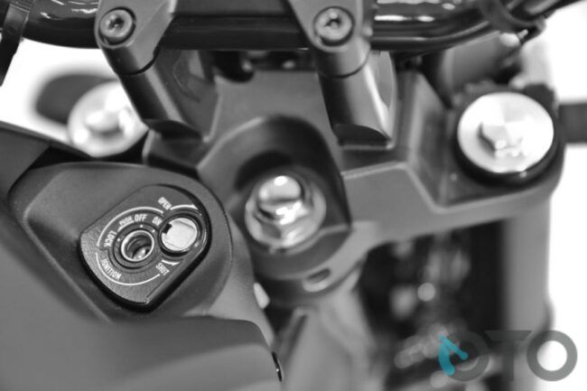 Konsol setiap sisi stang mirip dengan MT-15. Kanannya ada switch starter, di bawahnya ada tombol buat hazard. Kirinya ada lampu dim, lampu dekat jauh, klakson dan sein. Bannya lebar tipe tubeless dual purpose Trail Winner lansiran IRC.
