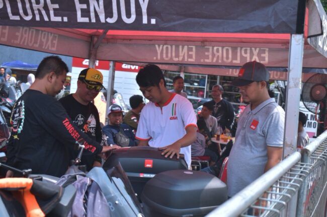 “Kali itu, kami juga menawarkan program buat komunitas. Terutama yang sudah punya boks Givi. Mereka bisa melakukan servis di sini secara gratis. Jika ada kebutuhan penggantian spare part, pihak Givi juga sudah menyediakannya. Apalagi buat pemilik boks yang lama. Kami juga memberikan diskon untuk pembelian spare partnya. Acara ditutup dengan nonton bareng MotoGP Jepang,” paparnya.