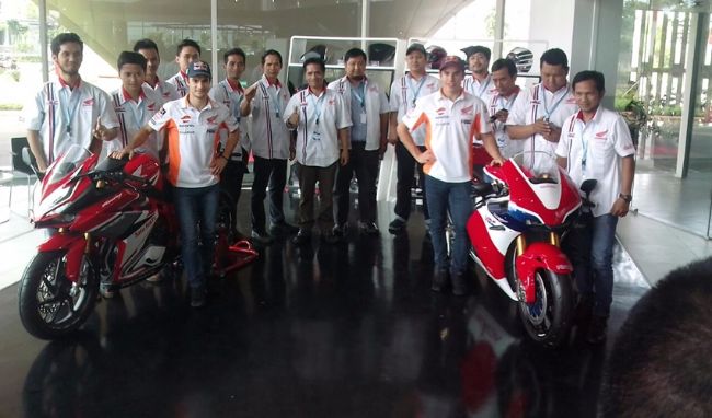Di Indonesia, Marquez dan Pedrosa juga bercengkrama dengan para pembalap Astra Honda Racing Team (AHRT). Selain memberi semangat agar para pembalap Indonesia berprestasi lebih baik lagi, mereka juga menyempatkan berfoto bersama.