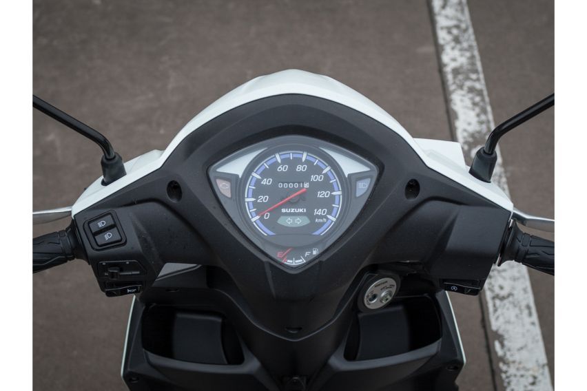 Fitur pada Address tergolong minim. Tak ada perpaduan digital-analog. Panel instrumen ditunjukkan dengan jarum mekanis baik speedometer, fuel gauge dan odometer. Selain itu, ada sensor malfungsi untuk area engine (Check engine), highbeam serta sisanya hanya sensor fundamental. Format tampilannya pun seperti pada skuter matic satu dekade lalu. Lampu LED? Jangan harap. Semuanya masih mengandalkan bohlam biasa. Standar banget.