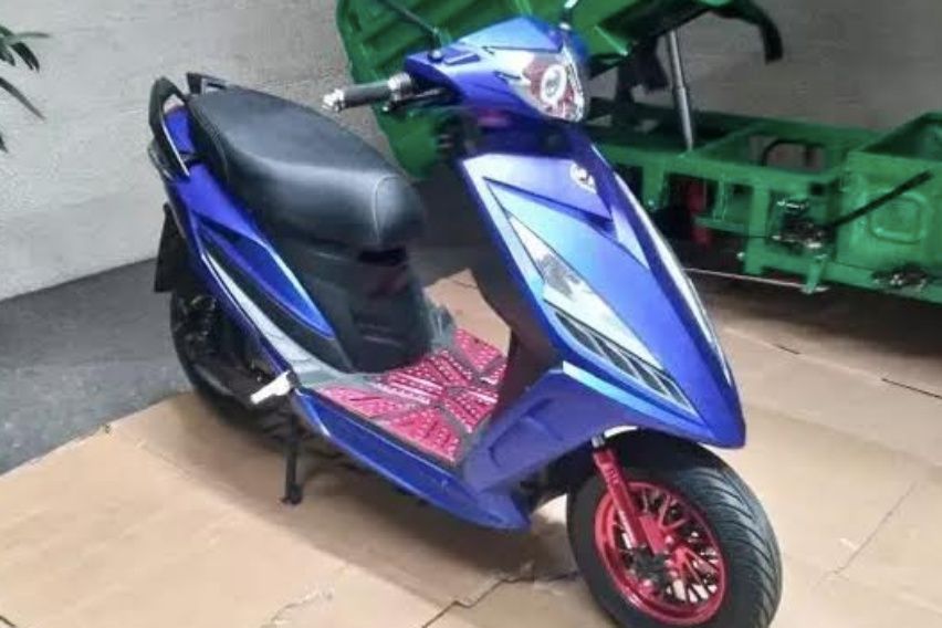 Sejumlah komponen bodi, pun memiliki aksen nyeleneh. Coba intip bagian dek. Pijakannya dilabur merah, termasuk pelek depannya. Menjadi kontras dengan sapuan kelir biru muda di seluruh panel bodi. Plus garpu di depan ikut disemprot cat merah. Rasanya bukan selera semua orang.