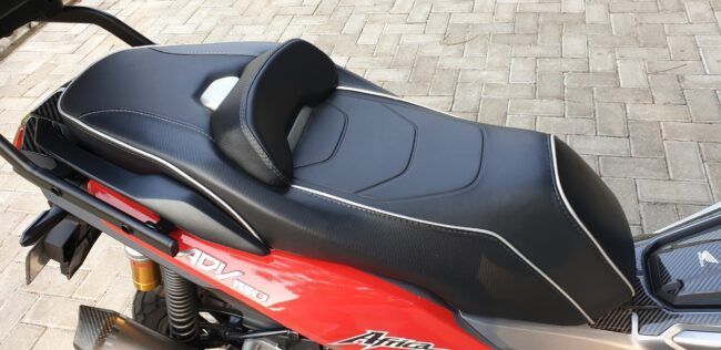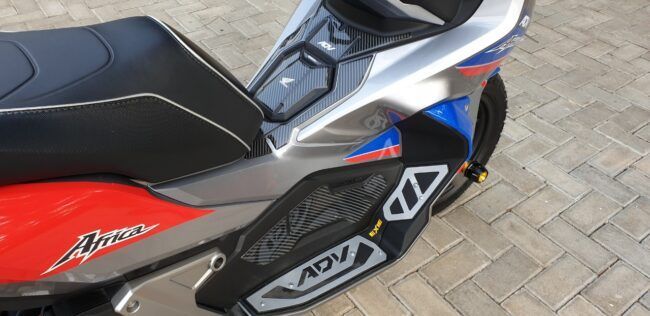 Wajahnya kini berbeda dengan ADV150 lain. Ditambah lagi penambahan produk pendukung seperti spion, top box, jok dan GPS holder. Khusus jok butuh waktu lebih lama. Menurutnya, karena saat itu belum ada seat maker yang jual frame ADV150. "Saya pesan ke Kedai Riders model jok Europe. Nunggunya lumayan lama, 3 hari," katanya.