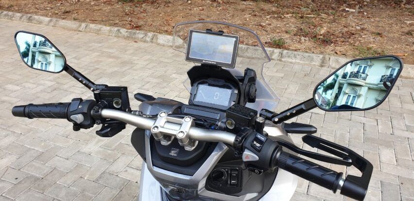 Penambahan berikutnya, bracket untuk GPS Navigasi. "Sebenarnya universal (bisa buat smartphone). Tapi saya lebih suka GPS Navigasi. Apalagi kalau buat jalan jauh. Navigasi bisa tetap update, karena tidak pakai pulsa dan terhubungnya ke satelit. Satu lagi, ada juga GPS Tracker. Lebih safety. Selain bisa mengetahui posisi motor, saya juga bisa mematikan mesin ADV150 lewat aplikasi di smartphone," ungkap Habibie yang juga berperan sebagai Chief Media & Brand Activation PT Superspring.