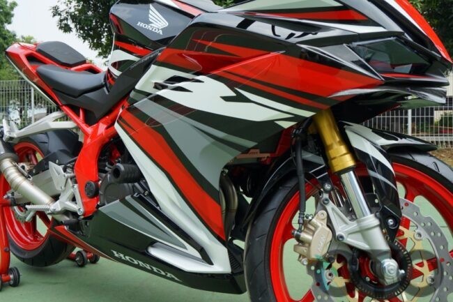 Satu contohnya dapat Anda lihat pada sosok CBR250RR SP modifikasi berikut ini. Kala kami bertatap muka dengannya beberapa waktu lalu, PT Astra Honda Motor (AHM) juga menampilkan versi modifikasinya. Area wajah, tangki bensin serta fairing menjadi sektor paling mencolok, lantaran sudah ketambahan decal. Pihak R Autoworks selaku modifikator menamainya dengan Chameleon stripe berpadu padan kelir merah, putih dan abu-abu. Selaras kala diaplikasikan pada tubuh motor berwarna hitam ini.