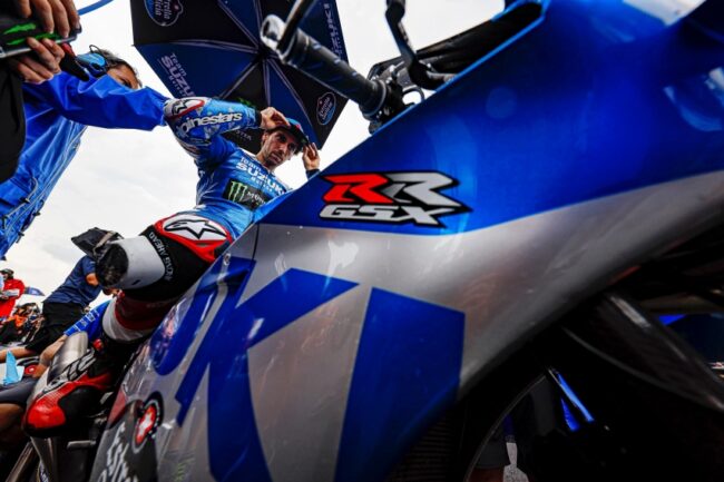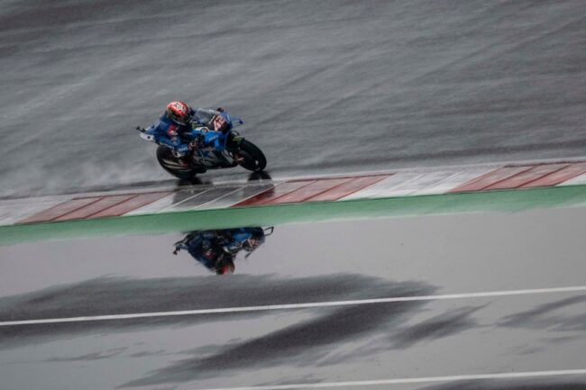 Hujan deras yang mengguyur Sirkuit Pertamina Mandalika International Street Circuit sesaat sebelum MotoGP dimulai membuat tim harus mengubah strateginya. Alex Rins, rider Suzuki Ecstar bernomor 42 yang memulai dari posisi delapan, sempat bertarung memperebutkan podium pada putaran awal.