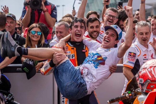 Sang Adik, Alex Marquez lebih tersenyum lebar. Di Sepang, rider tim Marc VDS dinobatkan sebagai juara Moto2 2019. Ia memang cuma finis kedua dan kalah dari Brad Binder (KTM Racing). Tapi, hasil ini sudah cukup untuknya melakukan selebrasi gelar di sana. Pasalnya, saingan terdekatnya yaitu Thomas Luthi tak kuasa lagi mengejar perolehan angka Alex.