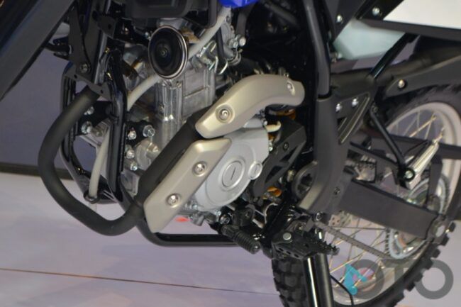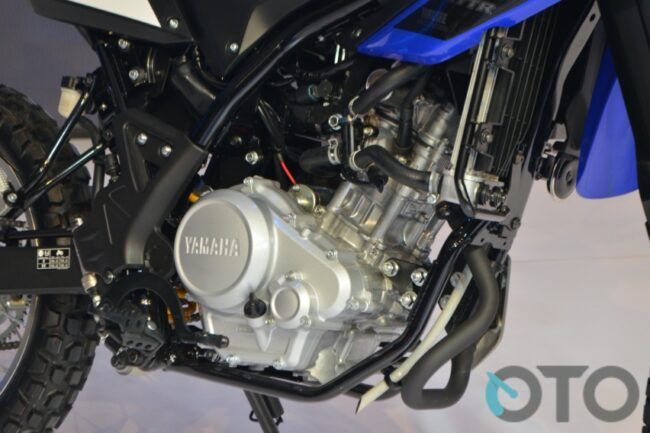 Mesin ini juga disajikan dengan pendinginan radiator. Yup, sistem distribusi suhu mesin dengan sirkulasi cairan ini memang menjamin mesin bisa bekerja lebih optimal. Model kompetitor, tak satupun yang pakai. Hanya saja, kami masih sangsi efektivitas radiator pada motor trail 150 cc. Pasalnya, untuk mendinginkan, dibutuhkan kecepatan motor yang cukup. Sedangkan kita tahu sendiri saat bertualang di medan off road, kecepatan biasanya rendah. Bisa saja, Yamaha mempertimbangkan penggunaan dalam kota. Perlu diuji lebih lanjut.