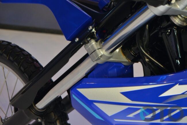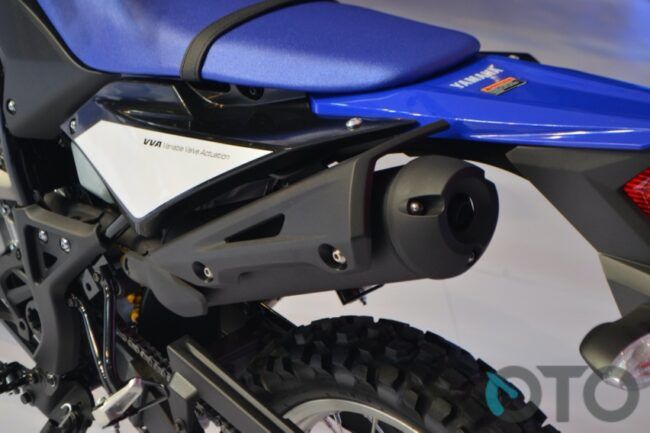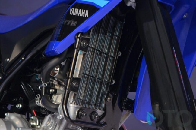 Uniknya, posisi radiator dan knalpot tidak seperti motor trail pada umumnya. Komponen pendingin mesin itu berada di bagian kanan, tepatnya di balik sayap depan kanan. Letaknya dipasang vertikal bukan horizontal. Sedang knalpotnya ada di sisi kiri. Insinyur Yamaha merancang itu dengan tujuan agar bisa melepas panas lebih baik.