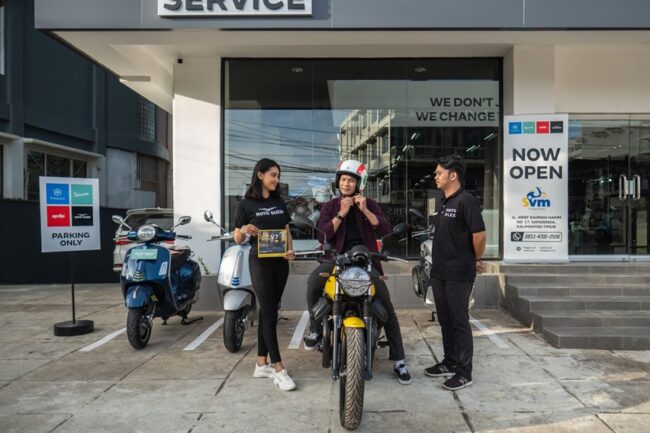 “Dengan hadirnya merek-merek Piaggio Group di berbagai area dan kota penting di seluruh negeri, kami yakin pertumbuhan berkelanjutan jaringan dapat memberikan peace of mind lebih kepada para penggemar otomotif dan gaya hidup,” tambah Marco.
