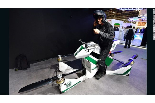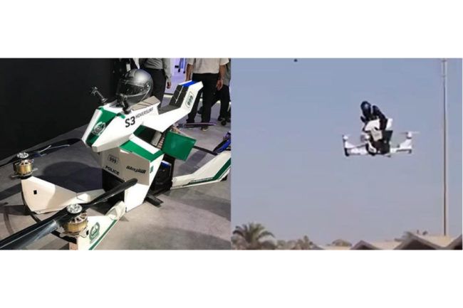 Dilansir dari pewartaan situs Visordown, motor terbang milik kepolisian Dubai, mirip seperti drone besar yang bisa mengangkut orang. Dibuat oleh Hoversurf, perusahaan dari Rusia namun berbasis di California, Amerika Serikat. Estimasi harganya, $59 ribu atau hampir Rp 900 jutaan. Kecepatan di udara diklaim bisa menyentuh 65 km/jam dan mengudara selama 20 menit dalam sekali pengisian daya baterai sampai penuh.