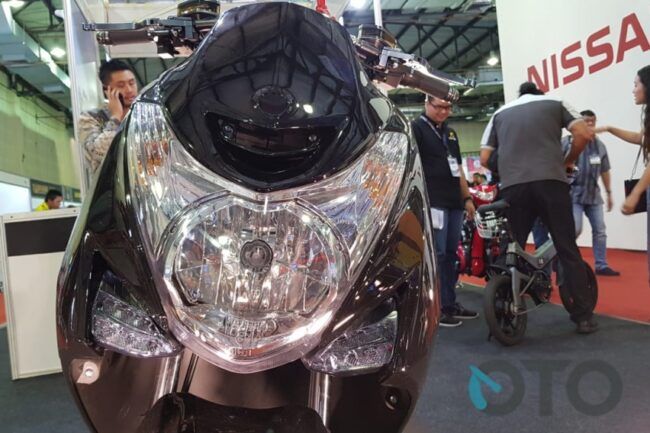 Tipe ini dikatakan masuk kategori skutik listrik premium. Tampang depannya mengingatkan kita dengan skutik bongsor dari pabrikan Jepang. Lampu utama dan sein dibuat terpisah, namun belum pakai teknologi LED. Beda dengan belakang, stoplamp sudah berbasis dioda.