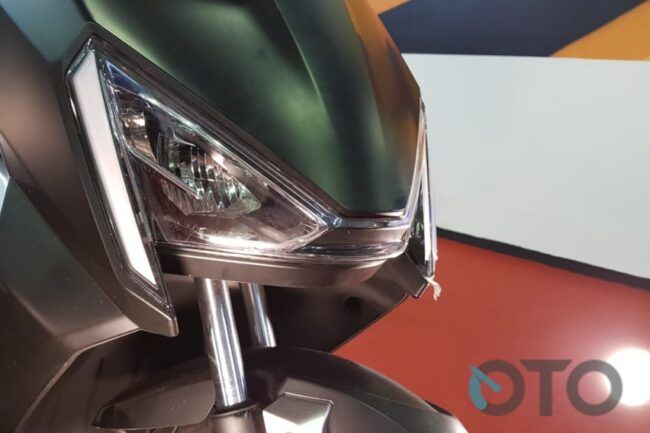 Desain fasadnya kental dengan konsep futuristik. Namun sayang, hal itu jadi kurang menarik karena lampu utama dan sein masih menggunakan bohlam. Di tepi bagian lampu utama terdapat lampu senja berwarna putih memanjang, ini sudah LED. Windshieldnya mempunyai jarak cukup jauh dari bagian pencahayaan. Desainnya dibuat mengambang alias tidak menempel dengan tameng depan.