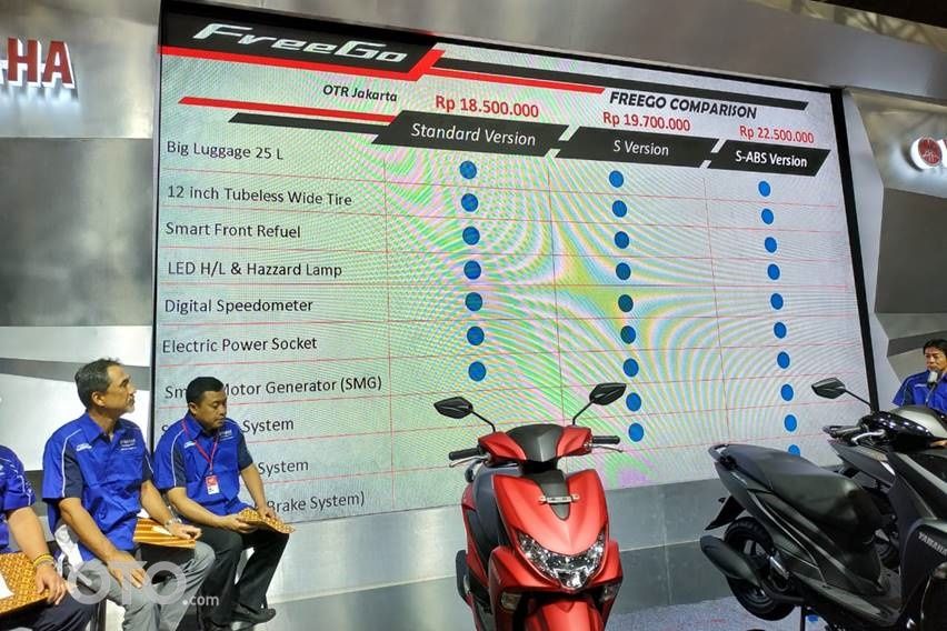 FreeGo, skutik entry level Yamaha. Walaupun menyandang status kelas pemula, ia sanggup menyajikan berbagai fitur menarik. Bahkan, cenderung berbeda dari motor lain di kelasnya. Seperti tangki bensin di bawah dek, bagasi luas (25L), mulut tangki di laci kiri serta lampu LED. Yamaha memilahnya dalam tiga varian : Standard, S, dan S ABS. Berikut ulasan lengkap ketiganya.