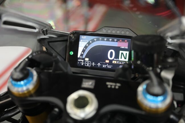 Lalu ada teknologi New Multipoint Piston Jet yang mampu menyemprotkan pelumas pendingin pada piston dari berbagai arah. Tugasnya menjaga temperatur piston dan mengurangi gesekan berlebih. Guna mengimbangi output mesinnya yang gahar, motor ini ditunjang dengan sistem pengereman yang advanced. Di depan misalnya, tersemat Brembo Dual Front Disc Brake Radial 4 piston berukuran 330mm, sementara di belakang ditopang dengan Brembo 2 piston 220mm.