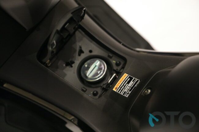 Sepanjang mata memandang, sajian anyar juga terdapat di area dasbor. Utamanya menilik area kunci kontak. Versi dasar memang masih menggunakan rumah kunci dengan pengaman magnet. Tapi di bagian itu, sekarang sudah bersanding, tombol pembuka jok dan cover tangki bensin. Ya, cover tangki bensin. Jawaban atas permintaan konsumen terdahulu yang kerap mengeluhkan ribetnya proses buka tangki bensin. Hal inilah yang tak ditemui pada NMax lama.