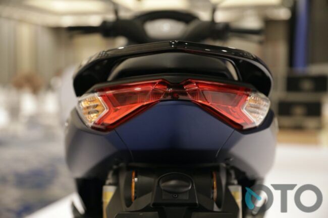 NMax baru menggunakan komposisi penerangan anyar. Tentunya tetap LED. Di dalam rumah lampunya terdapat list, sebagai pemisah lampu utama dan lampu jauh. Untuk lampu utama berada di atas. Sedangkan lampu jauh menempati bagian bawah. Nah, menariknya high beam NMax sekarang ada dua unit. Posisinya pun sejajar dengan low beam. Berbeda dengan Nmax lama yang cuma punya satu unit lampu dan ada di bagian tengah saja. Ubahan juga menyasar bagian tubuh lain di buritan. Desain stop lamp serta sein NMax 2020 juga berbeda, namun tetap halogen. Lampu rem pun terpisah kanan dan kiri.
