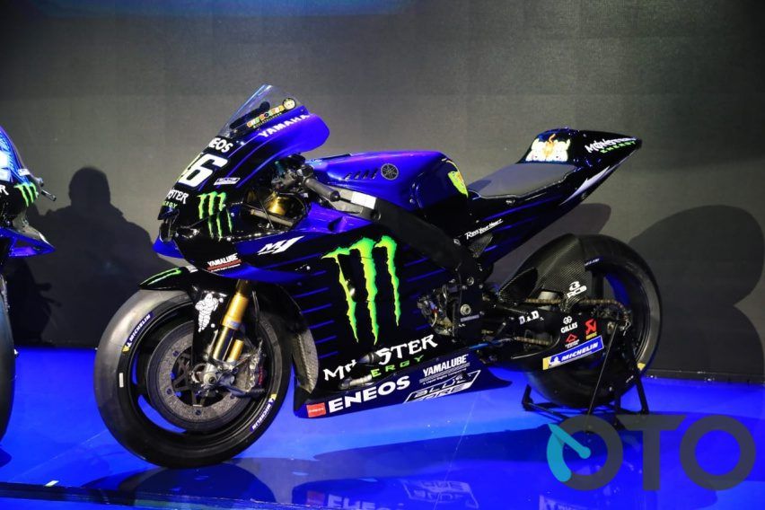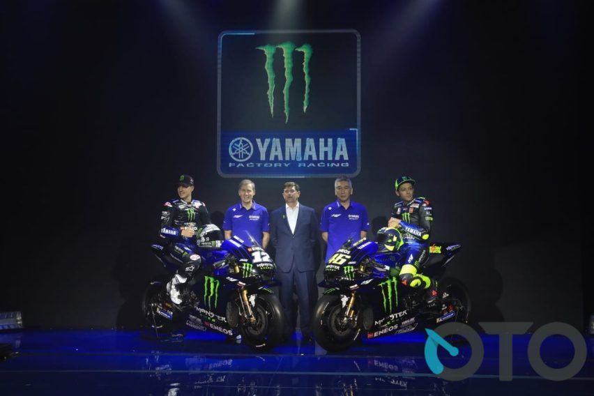 Tim pabrikan Yamaha MotoGP luncurkan motor balap musim 2019 di Jakarta. Seremonial ini dimeriahkan langsung oleh duo pembalap jagoan mereka, Valentino Rossi dan Maverick Vinales. Kuda besinya tahun ini punya corak warna yang berbeda. Warna gelap cukup mendominasi. Sebab Monster Energy Company, sebagai sponsor punya kelir hitam dan hijau menyala.