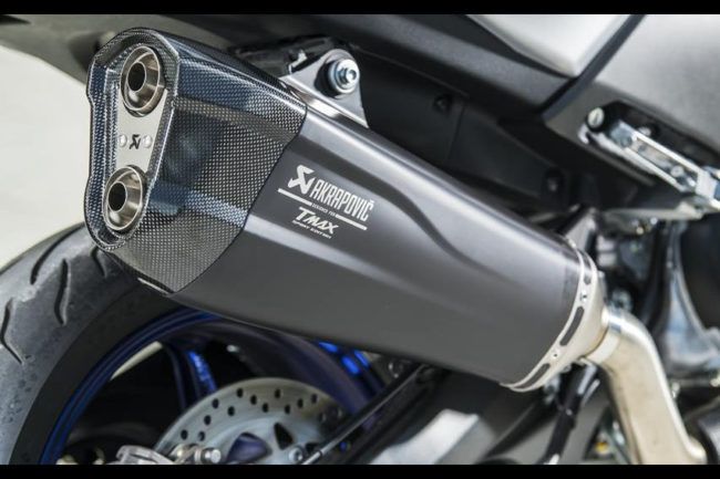 Keistimewaan TMax SX Sport Edition, salah satunya lewat knalpot Akrapovic yang memiliki pelindung panas dari material karbon. Logo Akrapovic dan TMax juga disematkan untuk memperkuat identitas. Bukan cuma itu, windscreen dibuat lebih pendek dan berwarna gelap menyesuaikan tema sportif. Bagian sepatbor juga diubah lebih pendek, layaknya milik motor sport.