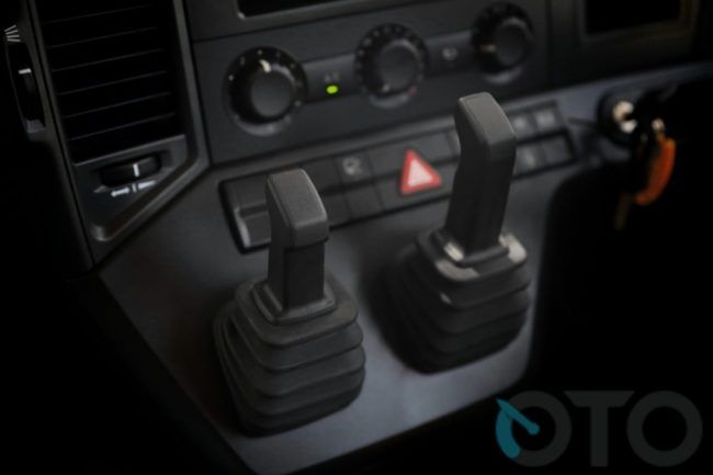 Kedua mesin itu disandingkan dengan transmisi 12 percepatan hingga 16 percepatan. Sistem tramsmisi truk ini menggunakan transmisi otomatis yang telah diperbaharui, guna memberikan kemudahan dan kenyamanan untuk pengemudinya. Sebagai penunjang kenyamanan dan keamanan, disematkan tombol engine start airbag, power window dan central lock di bagian pintu. (Bgx/Van)