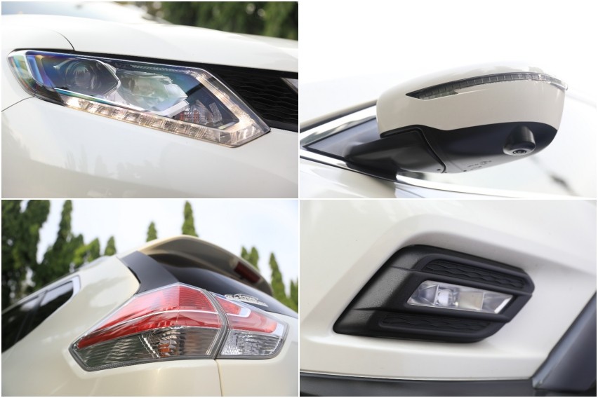 Fitur yang ada di eksterior kedua mobil memang tidak terlalu istimewa. Misalnya, lampu depan dengan DRL (Day-time Running Light) yang sekarang sudah umum ada di hampir semua mobil baru. Lampu utama X-Trail sudah pakai proyektor, sementara CR-V belum. Tapi lampu depan CR-V berjenis LED yang lebih ramah lingkungan.