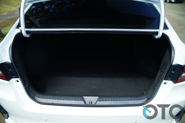 Berpindah ke baris kedua, rasa lega tersaji khususnya pada leg room. Bila diisi tiga orang, ruangnya masih terasa lapang. Walau memang head room terbilang tipis. Toh dia merupakan sedan, tapi ini tertolong pengaplikasian desain fastback. Kepala masih aman dari terbentur atap. Kenyamanan disokong posisi sandaran yang tidak terlalu tegak. Nilai lebih dari Vios teranyar juga terletak pada bagasi. Ia nyatanya diperluas Toyota.