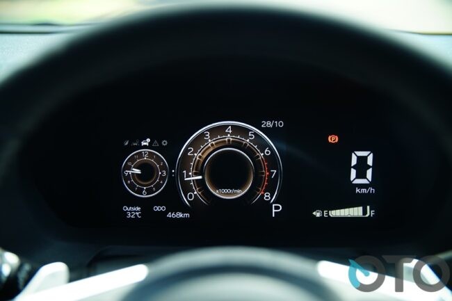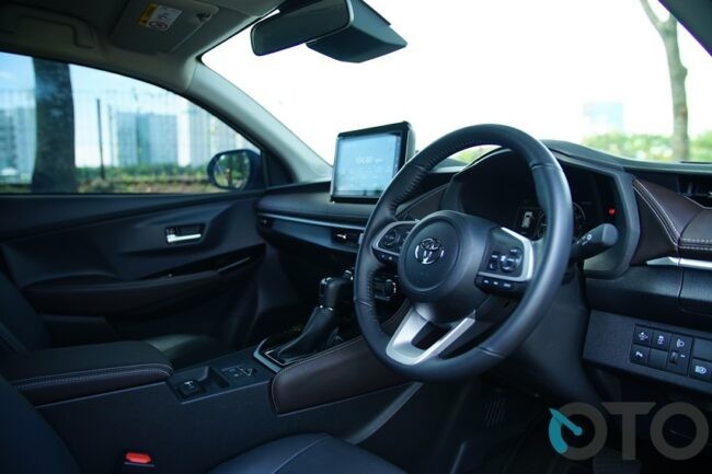 Di area pengemudi lebih mumpuni lagi. Panel instrumen sudah digital 7 inci dengan multi information display. Kemudinya mirip-mirip Raize, ramping dan tentu saja dipenuhi tombol. Ia punya fungsi tilt dan telescopic, sehingga mengakomodasi beragam karakter tubuh pengemudi. Ini masih ketambahan pengaturan jok yang fleksibel. Visibilitas berkendara lumayan, meski pilar A terasa agak besar, head unit yang timbul keluar dan adanya perangkat deteksi untuk Toyota Safety Sense di belakang spion tengah sedikit mengganggu. Tapi setidaknya bonnet yang lebih panjang cukup membantu dalam mengukur batas depan.