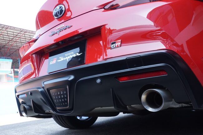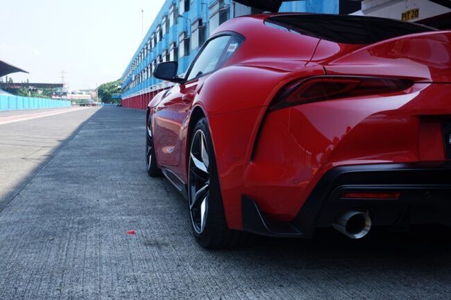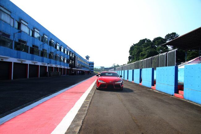 Di balik keterbatasan unit yang bakal beredar, beruntung sekali saya bisa merasakan salah satunya di sirkuit Sentul. Pertanyaan ingin dijawab, apakah punya kehebatan untuk meneruskan kelegendarisan Supra A80. Tampilan luar cukup meyakinkan. Bentuk membulat dengan kap mesin panjang tipikal A80. Ada sedikit bagian mengingatkan bahwa ini adalah generasi penerus. Cirinya masih ada, tapi sudah tertutup modernisasi. Banyak lubang sebagai peranti aerodinamika. Sayang, spoiler belakang besar ciri khas dihilangkan. Berganti duck tail menjulang, selaras dengan aliran garis bodi. Tampang keseluruhan persis mencomot konsep toyota FT-1 2014 lalu. Banyak kemiripan, tapi punya postur berbeda. Tak lain menyesuaikan platform.