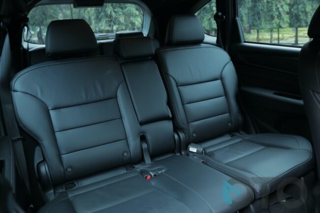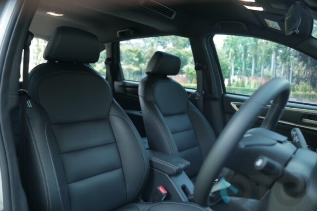 Kesan mewah kami dapat dari desain jok, layout interior dan material yang digunakannya. Warna hitam yang dominan hingga ke lantai dan atap membuat kesan eksklusif. Bahan yang membungkus jok terasa begitu premium, sungguh naik kelas dari BR-V yang kami lihat pada 2016. Di beberapa sisi pintu, masih ada permainan material antara plastik dan kulit, impresif.