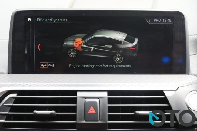 Di mode berkendara Eco Pro, penyaluran tenaga berlangsung secara moderat untuk menjamin efisiensi berkendara yang maksimal. Memangnya berapa konsumsi bahan bakar mobil ini? BMW mengklaim konsumsi bahan-bakar rata-rata gabugan dalam kota dan tol 13,6-13,8 kpl. Di mode Eco Pro saat kami mengujinya sendiri, X4 xDrive30i sanggup mencatatatkan konsumsi BBM di dalam kota 8-10 kpl. Saat pengujian di tol, catatan terbaik kami cukup menjanjikan, 19,3 kpl.