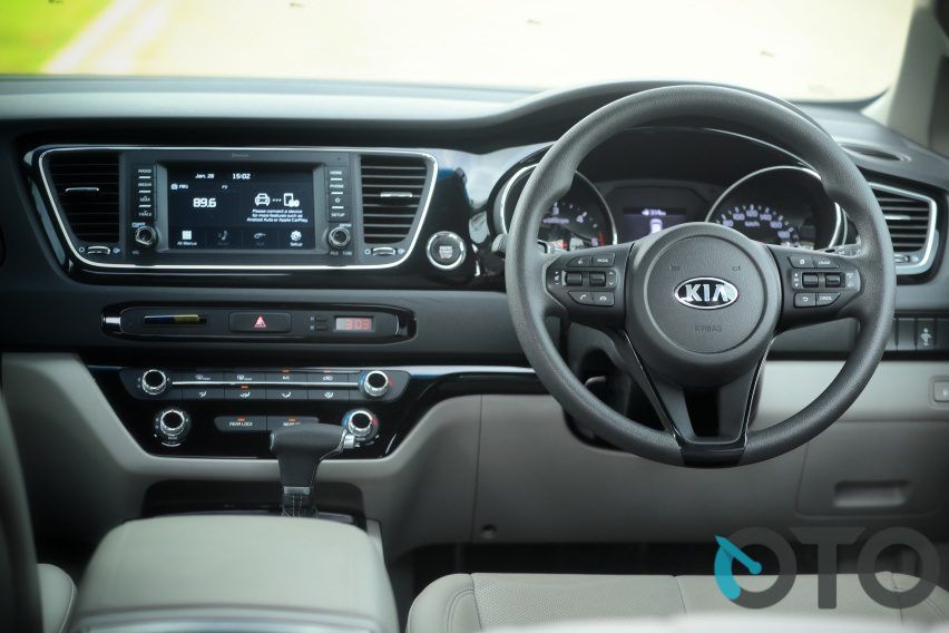 Maksud KIA begini, kursi baris keempat bisa mengakomodasi tiga anak. Tapi menurut kami, selain kursi baris keempatnya, dua kursi di kolom tengah pun kurang begitu nyaman ditempati orang dewasa lantaran tak dilengkapi sandara kepala. Kursi tengah baris kedua dan ketiga itupun, lebih pantas dibiarkan terlipat dan berfungsi sebagai sandaran tangan saja. Jadilah mobil ini memiliki kapasitas angkut 6-penumpang dengan konfigurasi captain seat di kursi baris kedua dan ketiga. Ruang kosong di kolom tengah bisa juga berfungsi layaknya gang untuk akomodasi masuk keluar penumpang ke kursi baris ketiga dengan nyaman.