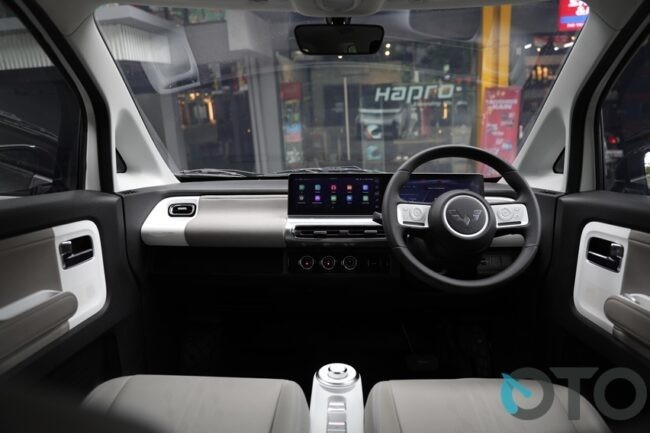 Jujur saja layout dari interior Air ev tergolong menarik, bahkan saya bilang tak seperti mobil di bawah Rp300 jutaan pada umumnya. Sentuhan modern dan futuristik jelas nampak pada mobil bebas polusi tersebut.