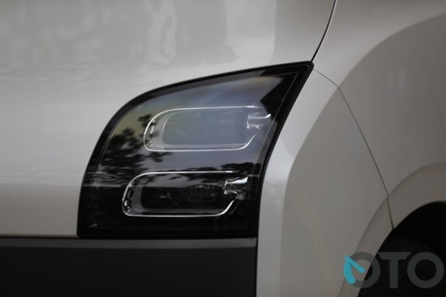 Varian tertinggi dari Air ev ini menurut kami lebih komunikatif. Visualnya modern berkat lampu utama berteknologi LED proyektor dengan kombinasi DRL (daytime running light) horizontal yang cukup panjang dari sisi kiri hingga kanan fascia.