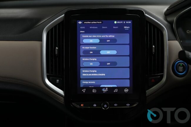 Fiturnya sama lengkapnya dengan Almaz RS. Termasuk perintah suara bahasa Indonesia WIND, IoV, panoramic dan sunroof, layar infotainment superbesar bak tablet vertikal, update sistem OTA (over the air), wireless charging. Sampai AC di baris kedua dan ketiga juga tersaji.