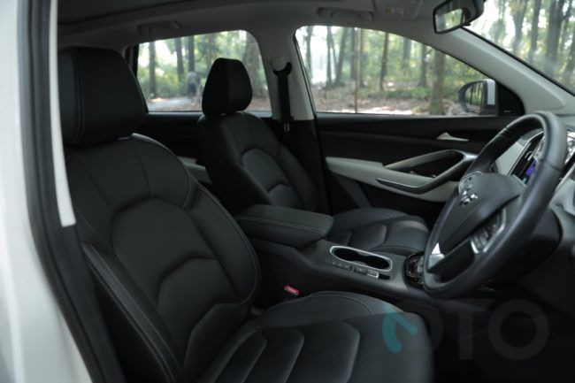 Duduk di kursi pengemudi, posisi berkendara cukup ideal. Apalagi pengaturan posisi mengemudi sudah elektronis. Walaupun posisi lingkar kemudi hanya bisa diatur ketinggiannya secara manual. Untungnya lingkar kemudi sudah dibalut kulit. Selain membalut setir dan jok, material kulit pun bisa dirasakan beberapa bagian interior, seperti dasbor, sandaran tangan hingga door trim. Sedangkan material plastik pada dasbor sudah paded.