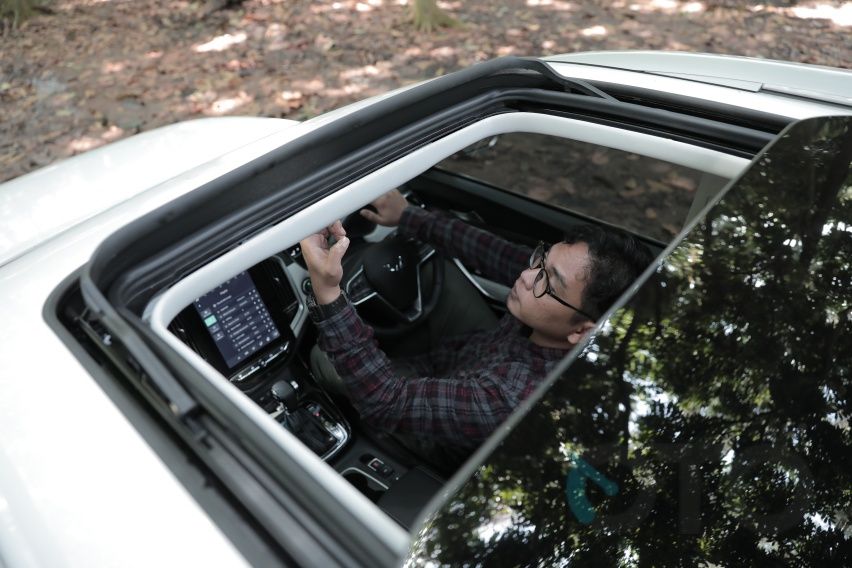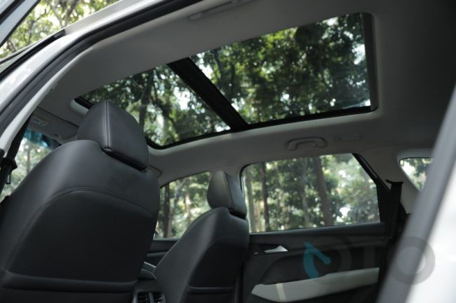 Kesan mewah yang ditampilkan Almaz pada bagian luarnya, ternyata bukan gimmick belaka. Memang interiornya dijejali banyak fitur modern yang hanya ditemui pada mobil dengan banderol tinggi. Masuk ke dalam kabinnya dan lihat ke atap. Anda disambut panoramic sunroof seluas hampir satu meter persegi (0,82 m2). Sentuhan kemewahan yang tak dimiliki para rivalnya yang lebih mahal. Risikonya, atap kaca lebih rentan pecah jika kejatuhan benda dari langit seperti batang pohon, misalnya.